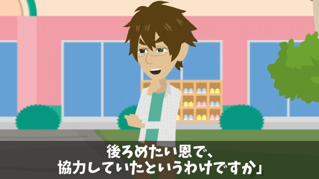先生はただの旅行を慶弔休暇として申請していたことを明かします。 それを聞いた主人公は「そういう、後ろめたい恩で、協力していたというわけですか」と言いました。