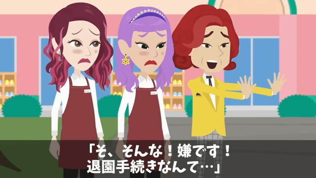 先生の話を聞いた主人公は、やはり先生たちは信用できないと言い、退園の手続きをしようとします。 すると園長は「そ、そんな!嫌です!退園手続きなんて…」と慌てて…。
