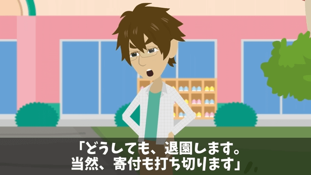 今回は『幼稚園へ迎えに行くと号泣の息子「片親の貧乏人とは遊んじゃダメって」しかし⇒俺の正体を明かした結果』を紹介します。 主人公が退園の手続きをしようとすると、園長がそれに抵抗しました。 そこで主人公が直接オーナーに話すと言うと、園長は「そんなあ!どうしても、どうしても退園するんですか?」と言い…。