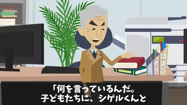 オーナーは大切な子どもたちを傷つけたことに対して怒っていると話します。 それに対し先生は、主人公の息子にしか嫌がらせをしていないと言いますが、オーナーは「子どもたちに、彼と仲よくしてはいけないと言ったんだろう!」と言い…。