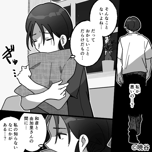その日から夫の行動が気になり始めた主人公は「最近彼女と仲がいいの?」と夫に直接尋ねます。 すると夫は「ご近所さんと普通に話してるだけだろ」と言い…。