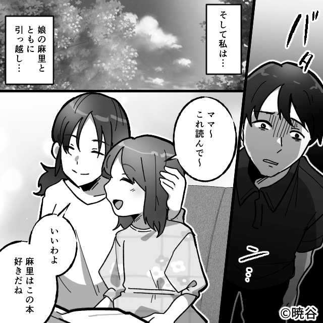 すがりついてくる夫を突き放し、娘と引越したのでした。