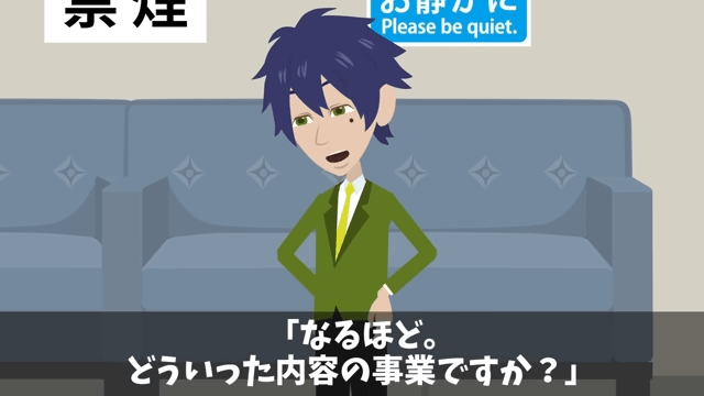 先生は自分たちが主人公の知り合いで、起業も主人公に勧められたと話します。 それを聞いた社長は、主人公の知人なら大丈夫だろうと判断して…。