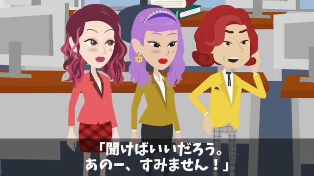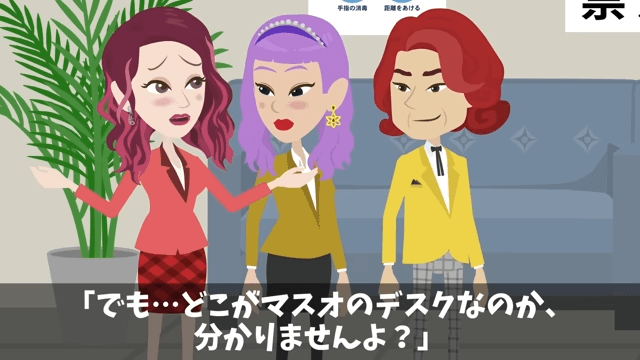 社長は園長たちを会議室に案内し、主人公を呼びに行きました。 その間に園長は、周りに声をかけて主人公のデスクがどこにあるのか探そうとします。
