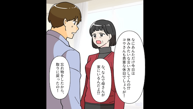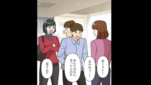 今回は『突然、夫が「母さんと義妹と住むから(笑)」と言うので離婚した話』を紹介します。 主人公が家を出る直前に「俺のメシ用意してから行ってよ」とわがままを言い出した夫。 主人公が「自分で用意できない?」と食事の準備を拒否すると、夫は「休みの日くらいゆっくりさせてよ」と言い…。