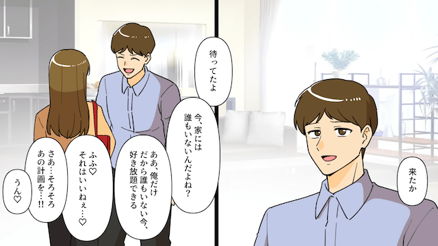 主人公が夫の言動にイライラしていると、忘れ物を取りに戻ってきた義母と娘が主人公の味方をしてくれました。 義母と娘に責められた夫は「わかったよ…自分でなんとかする…」と反省しますが、その後、ある人物を家に呼んで…。