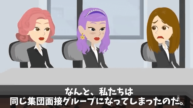 あろうことか同級生たちと同じ集団面接グループになってしまった主人公。 まさかの状況に主人公の心はかき乱されますが、面接はどんどん進んでいき…。