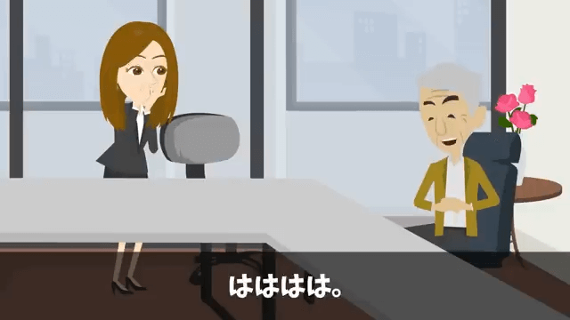 主人公が助けた車椅子の男性は、なんと証券会社の会長でした。 別室に呼ばれた主人公が男性を見て驚いていると、男性は「はははは」と笑い…。