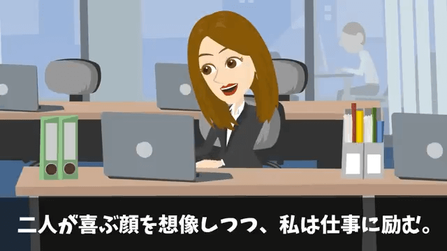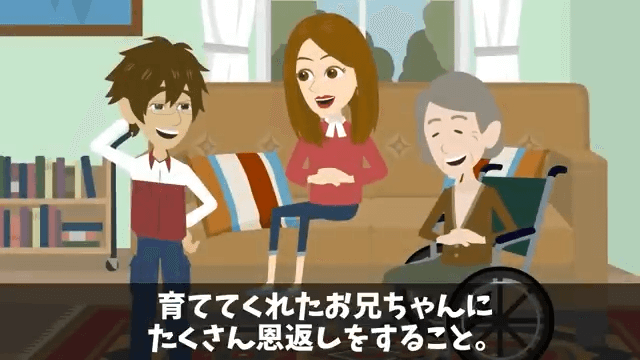 主人公は祖母を海外に連れていき、兄にたくさんの恩返しをしたいと思っています。 そして2人の喜ぶ顔を想像しつつ、主人公は仕事に励むのでした。