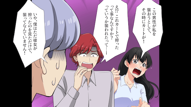今回は『カートで車に突っ込んだ”よそ見女”の末路』を紹介します。 カートで車に傷をつけた女性が逃げようとしたため、声をかけた主人公。 すると女性は、駆けつけた店員の前で「この人が襲ってきたんですぅ!」と主人公を悪者扱いして…。