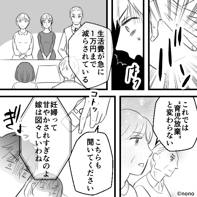 主人公が離婚を突きつけると、夫と義母は実家にやってきて玄関前で大騒ぎ。 そんな2人に暴言の証拠を突きつけ、主人公は「もう2度とあの家には戻りません」と告げたのでした。