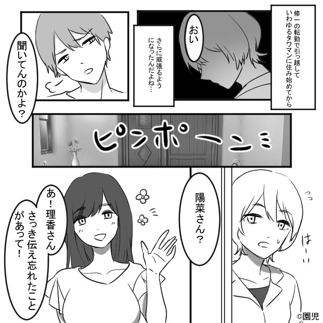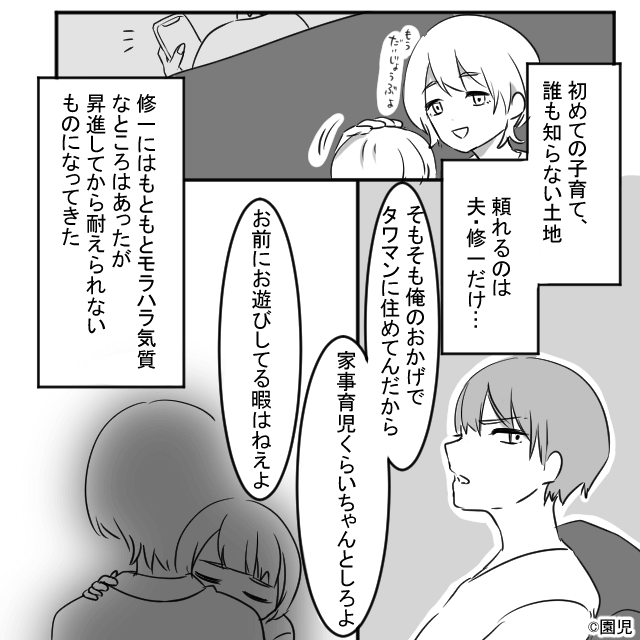 夫の転勤でタワマンに引越してから、モラハラがさらにひどくなった夫。 夫は家事も子育ても主人公任せで、威張るのでした。