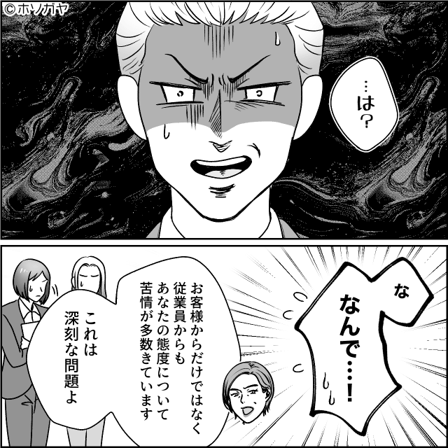 営業成績がトップになった店員に「大口案件、あなたに任せようかしら?」と言った店長。 そして店長は「苦情が多数きています」と男性店員に降格を告げます。