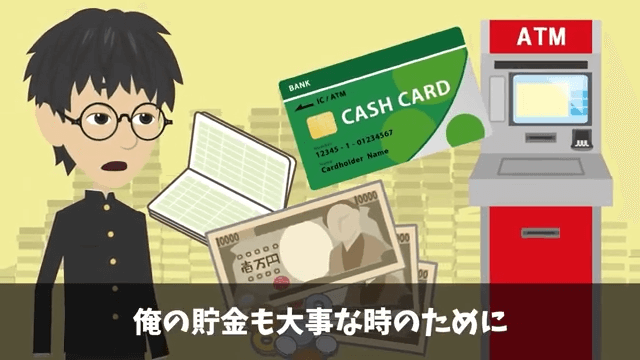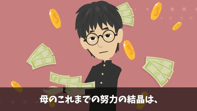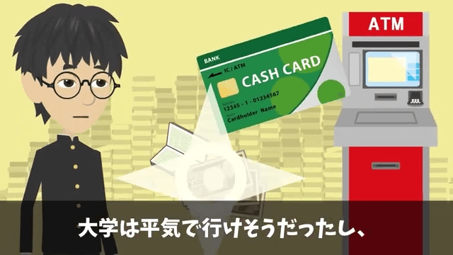 母は主人公が稼いだお金には手をつけず、自分が稼いだお金だけを生活費に充てていました。 その結果、主人公が問題なく大学に行けるほどのお金が貯まっており…。