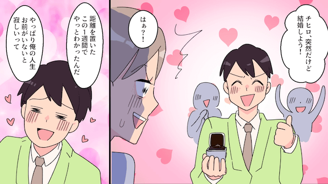 今回は『元彼氏「まだ独身?仕事してても結婚してやるよ!」私「もう結婚して娘いるよ?」⇒勘違いしている元彼氏の末路』を紹介します。 彼氏の身勝手な性格に愛想が尽き、距離を置くことにした主人公。 しかし彼氏は気にしていないようで、普通に話しかけてきて…。