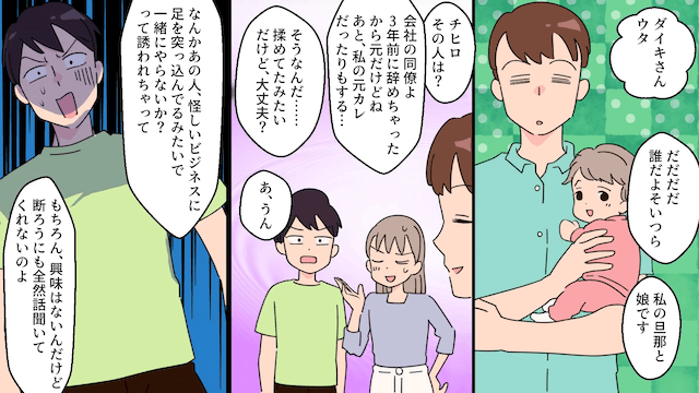 今回は『元彼氏「まだ独身?仕事してても結婚してやるよ!」私「もう結婚して娘いるよ?」⇒勘違いしている元彼氏の末路』を紹介します。 主人公が結婚したことを知り「俺を裏切ったのかよ!」と叫ぶ元彼氏。 会ったこともない夫のことを元彼氏が見下すため、主人公が怒っていると…。