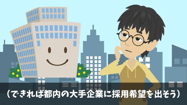 主人公は、できれば都内の大手企業に採用希望を出したいと考えていました。 そして「自分の息子はこんなにすごいんだよ」ということを母に見せたいと思っていたのです。