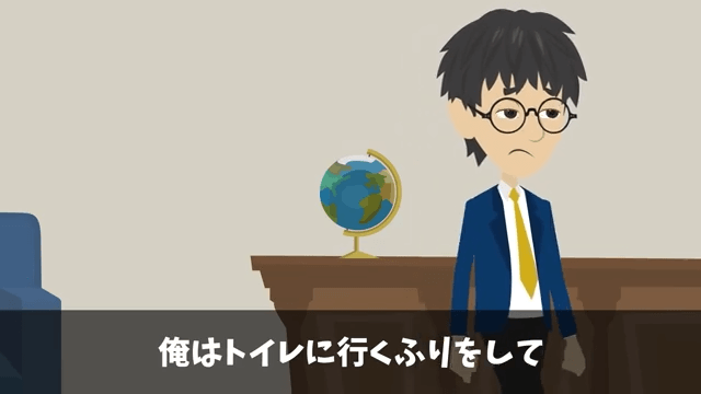 みんな緊張しているのか、面接の待機室は静まり返っていました。 そこで主人公は、トイレに行くふりをして、会社の外に出ることにします。
