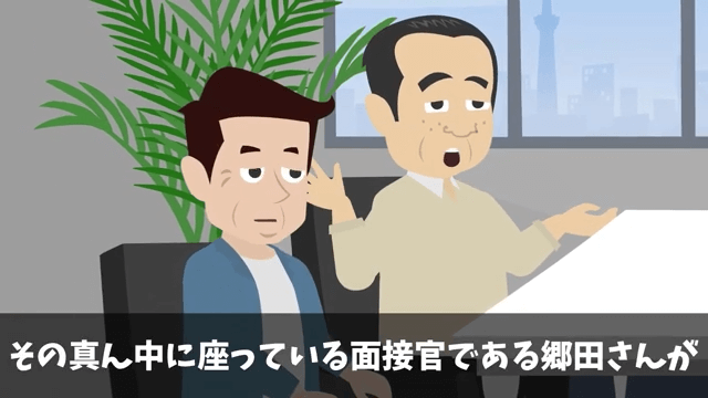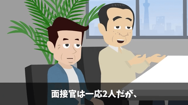 面接官が眼鏡の男性の名前を呼んで話しかけたため、主人公は驚いてしまいます。 その場に面接官は2人いましたが、先ほどの面接官だけがずっと話し続けていて…。