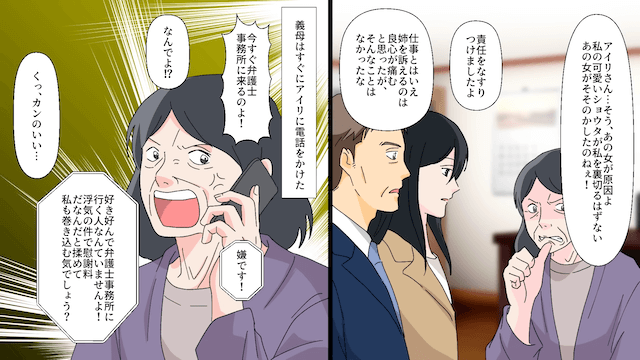 今回は『元夫「養育費払ってくれない?」義母「訴えるわよ?」と言われたので先に訴えた結果』を紹介します。 義母を裏切り、浮気を義母のせいにした元夫。 その後、元夫に裏切られたことを知らずに助けにやってきた義母は、主人公を責めるのですが…。