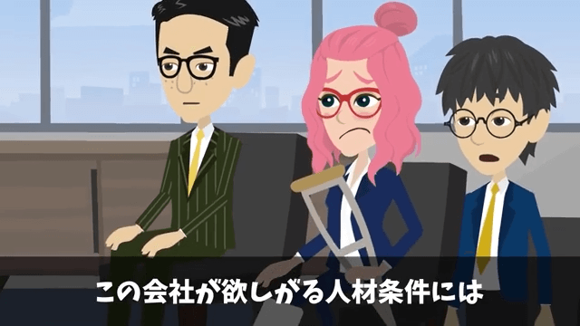 今回は『面接官「時間の無駄だから帰っていいよ」俺「わかりました」⇒圧迫面接されたのでクビにした結果』を紹介します。 主人公の話を聞いた面接官は大笑いし「もう時間の無駄だからさ?君は帰っていいよ?」と言ってきました。 そして面接官は松葉杖の女性のほうに目をやり…。