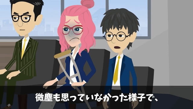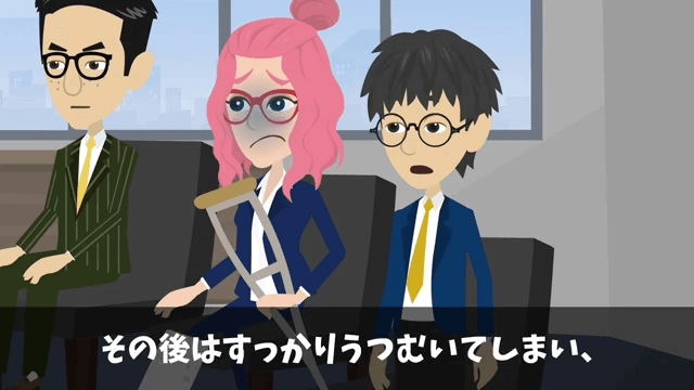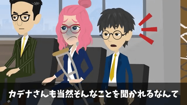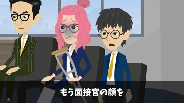 めちゃくちゃなことを言う面接官を前に、主人公はこれはもう面接ではないと思います。 松葉杖の女性もそんなことを聞かれるとは思っておらず、すっかりうつむいてしまいました。