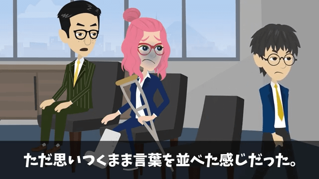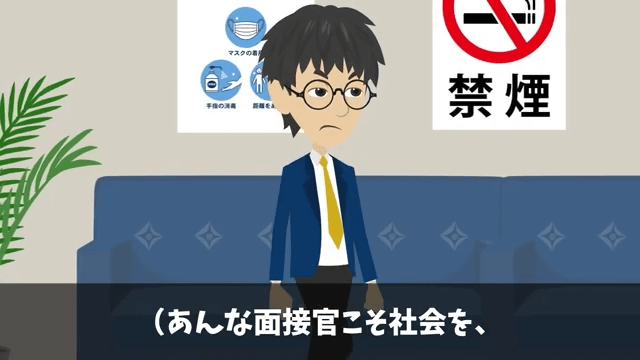 思いつくままに言葉を並べた主人公は、その場を後にしました。 そして主人公は、あの面接官こそ一般社会からクビになるべき人物だと思います。
