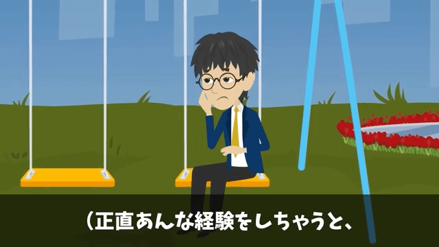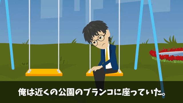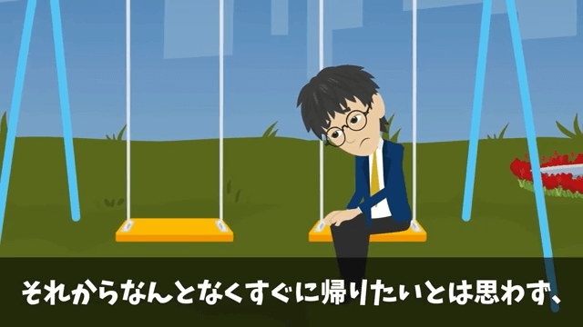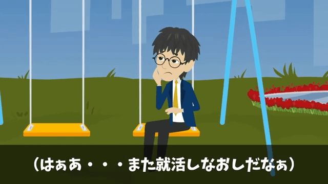 面接会場を出た主人公は、公園のブランコに座っていました。 そして「はぁあ…また就活しなおしだなぁ」とため息をつきます。