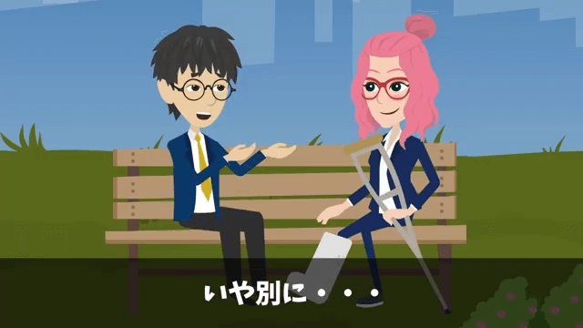 今回は『面接官「時間の無駄だから帰っていいよ」俺「わかりました」⇒圧迫面接されたのでクビにした結果』を紹介します。 主人公が公園のブランコに座っていると、松葉杖の女性から声をかけられました。 そこで主人公は松葉杖の女性を誘導する形で公園のベンチに腰掛けたのです。