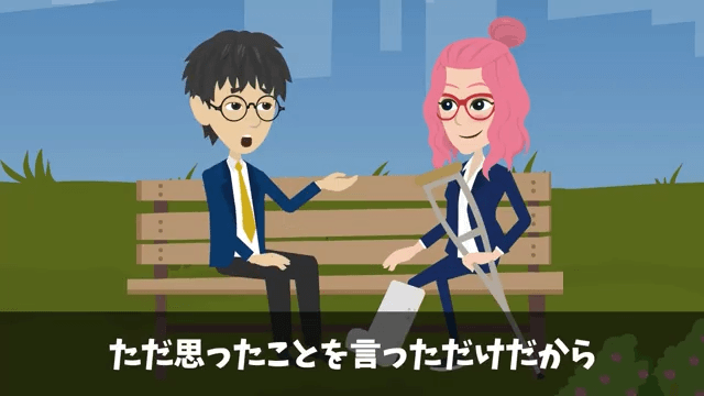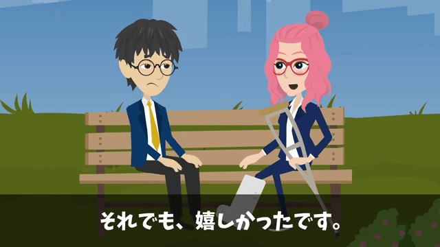 松葉杖の女性は、主人公が面接官にはっきり言ってくれて嬉しかったと話します。 それに対し主人公が「ただ思ったことを言っただけだから」と言うと、松葉杖の女性は「それでも、嬉しかったです」と言いました。