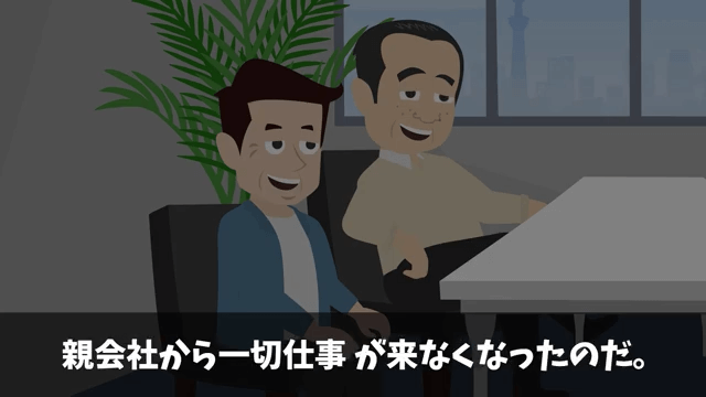 主人公がお世話になっている男性は、あの会社の親会社の社長でした。 そのため、あの会社には親会社から仕事が一切来なくなってしまい…。