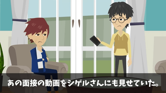 騒動から数ヶ月後、主人公は男性の会社で働いていました。 実は主人公は、面接の動画を男性にも見せていたのです。