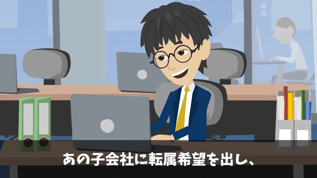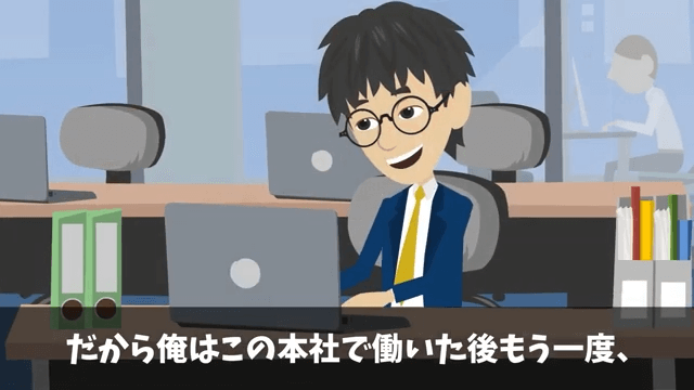 動画を見た男性は烈火のごとく怒り、結局、あの面接官は解雇されることになりました。 そして主人公は本社で働いた後、あの子会社に転属希望を出そうと考えており…。