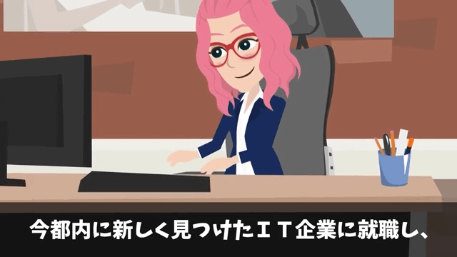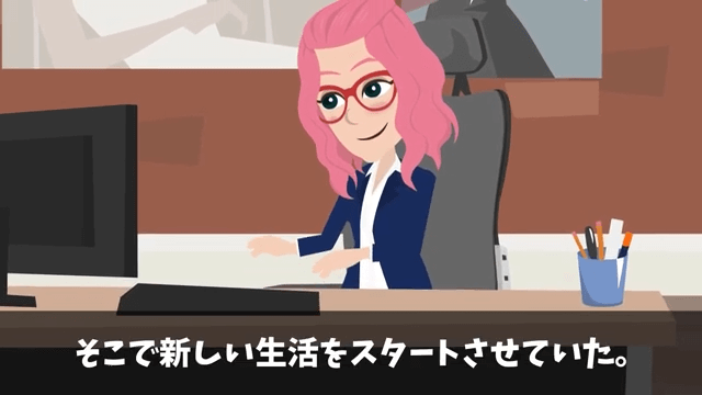 主人公と男性の関係を知った面接官がどう思ったのか、主人公は少し気になりました。 一方、一緒に面接を受けた松葉杖の女性はIT企業に就職し、新しい生活をスタートさせていて…。