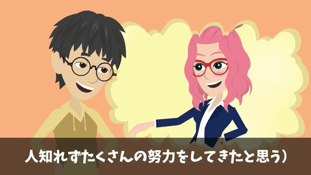 主人公は本当のステータスとは人生経験を積み、どれだけのノルマを超えてきたかで決まると考えます。 そして、あの面接官よりも松葉杖の女性のほうがずっと上位に立っていると思ったのでした。
