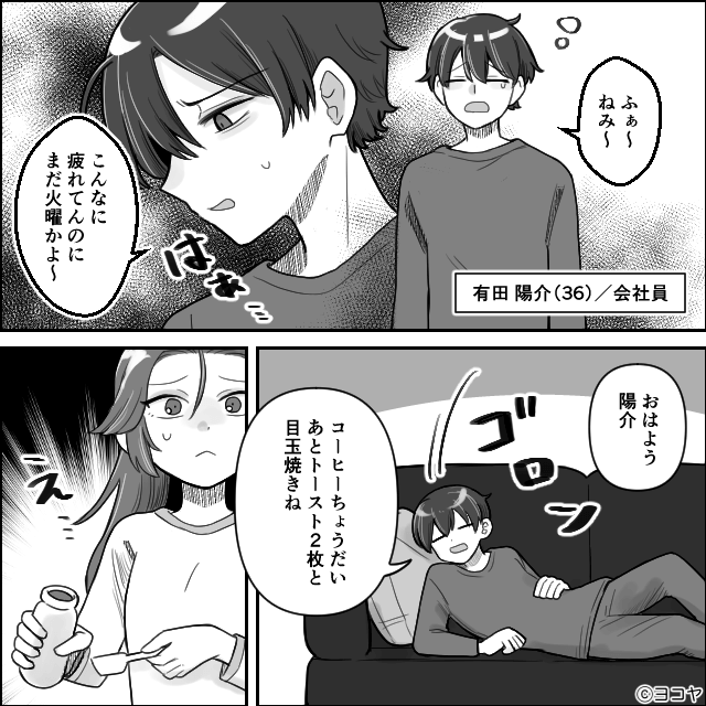 今回は『育休を“ただの休日”だと思ってるモラハラ夫の話』を紹介します。 子どもが生まれ、育休中の主人公。 子どもが夜なかなか寝てくれず、主人公は疲弊していて…。