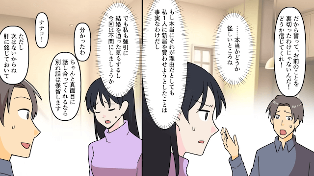 身勝手な発言を繰り返す彼に別れを告げ、女性に貢いでいる証拠を突きつけた主人公。 すると彼は浮気ではなく仕事の付き合いだと説明し、必死に頭を下げてきました。