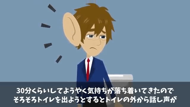 就職できていなかったことを知った主人公は気持ちが悪くなり、トイレにこもります。 するとそのとき、トイレの外から話し声が聞こえてきました。
