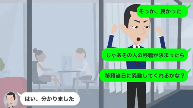 今回は『入社式に行くと→受付「名前がないですよ?」内定していなかった話』を紹介します。 主人公は新しい部署の部長クラスにふさわしい人がいないか男性社員に尋ねました。 すると男性社員が1人いると答えたため、主人公は「かかったな!」と内心喜び、その人の移籍が決まったら男性社員も一緒に異動してほしいと伝えたのです。