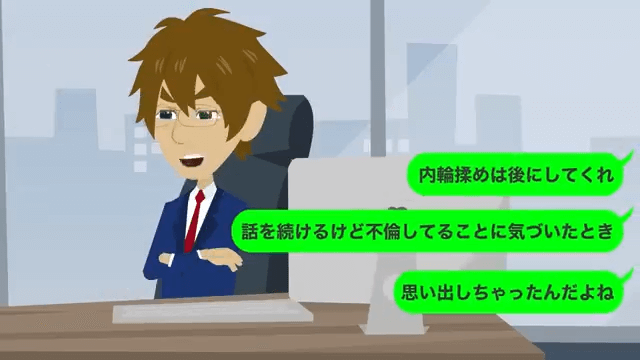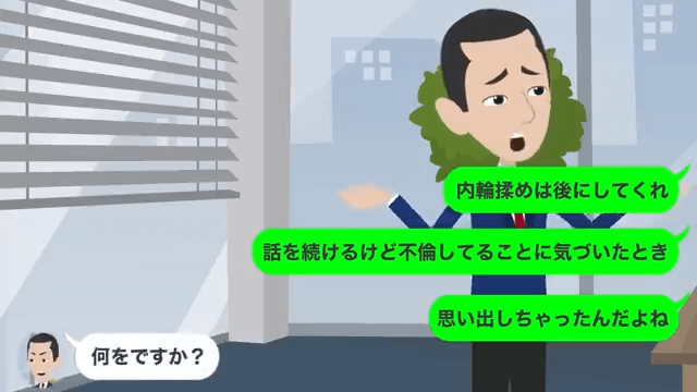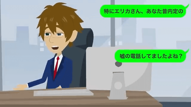 主人公にすべてバレていたことを知った部長は男性社員を責めました。 そんな中、主人公は部長が昔、内定について嘘の電話をしていたことを指摘して…。