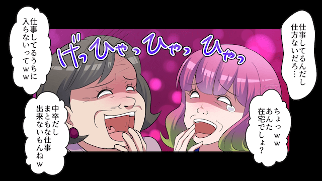 主人公の仕事を笑う2人