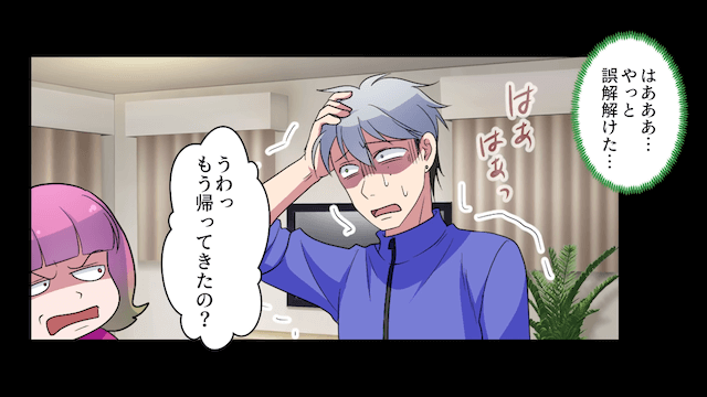 妹に不審者扱いされ、警察官に連行されてしまった主人公。 そして1時間後、誤解が解けてやっと帰宅できた主人公は、妹に激怒します。