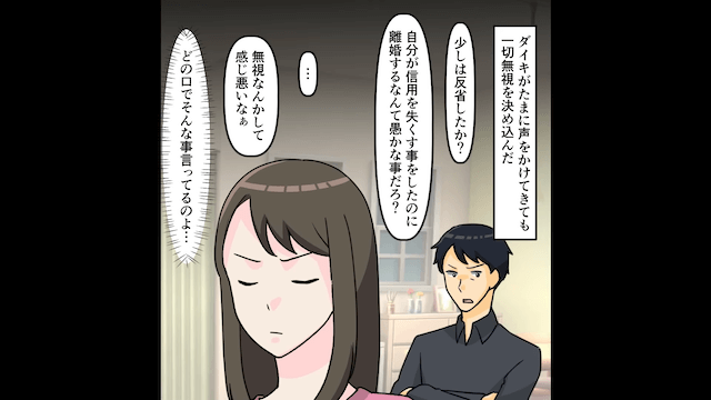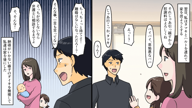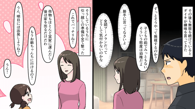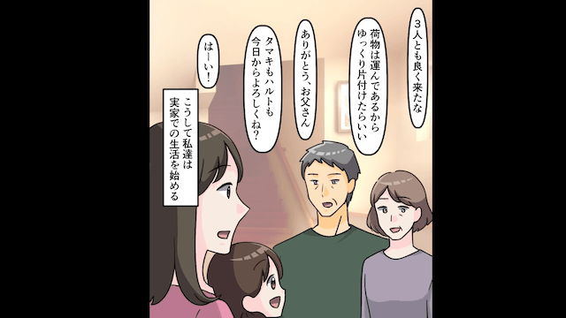 主人公は勝手な憶測で話を進める夫に呆れ、夫を無視して実家に引越したのでした。
