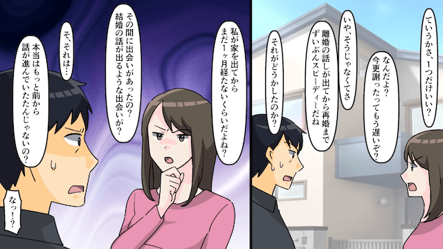 そして再婚を決めた夫に主人公が「ずいぶんスピーディーだね」と言うと、夫は焦り始めて…。