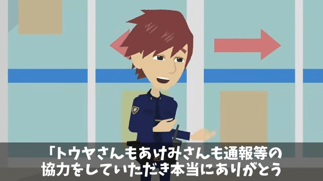 こうして幼なじみと部下は罰金を払うことになりました。 そして警察官は、協力してくれた主人公たちにお礼を伝えます。