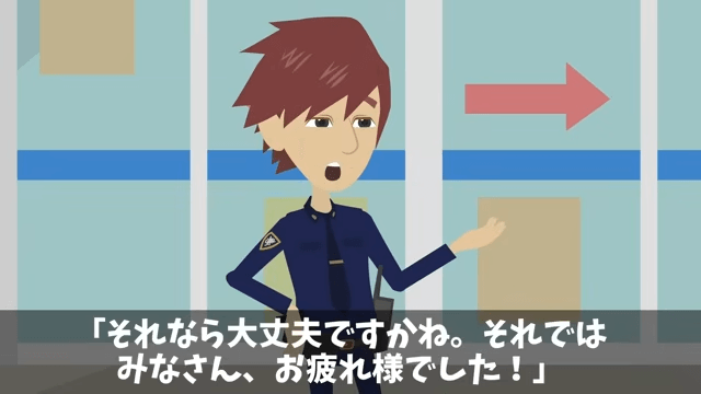 主人公は幼なじみとの電話での会話をすべて録音していると警察官に伝えます。 それを聞いた警察官は「それなら大丈夫ですかね。それではみなさん、お疲れ様でした!」と言いました。
