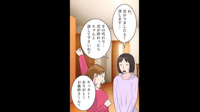 最初は拒否した主人公ですが、義妹に泣いて頼まれたため、渋々貸すことにして…。