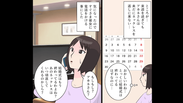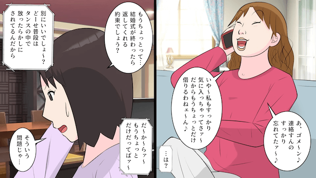 今回は『元義妹「毎月の仕送りは?」と連絡が来たので事実を突きつけた結果』を紹介します。 義妹に泣いて頼まれたため、大事なネックレスを貸すことにした主人公。 そして「式が終わったらちゃんと返してくださいね?」と約束したのですが…。