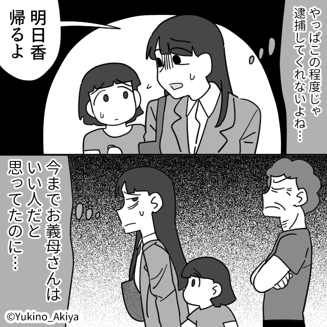 主人公が義母を問い詰めると、義母は今までも娘を放置していたことが判明。 主人公は頭の中が真っ白になり、義母に裏切られた気分になるのでした。