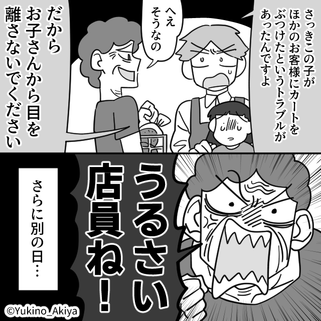 少し前、娘が押していたカートが他の客にぶつかり、店員に注意をされた義母。 しかし義母は「うるさい店員ね!」と逆ギレをします。